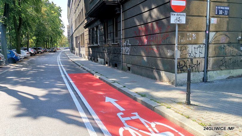 Zdaję sobie sprawę, że przestrzeń na tym odcinku jest ograniczona, jednak nawet w takich warunkach można rozważyć alternatywne rozwiązania. Jeśli nie będzie możliwości budowy osobnej drogi rowerowej, proponuję rozważyć opcję poszerzenia pasa ruchu dla samochodów i wydzielenia z niego pasa rowerowego, podobnie jak robi się to w wielu miejscach w Poznaniu. Załączam przykładowe zdjęcie ilustrujące, jak takie rozwiązanie może wyglądać.